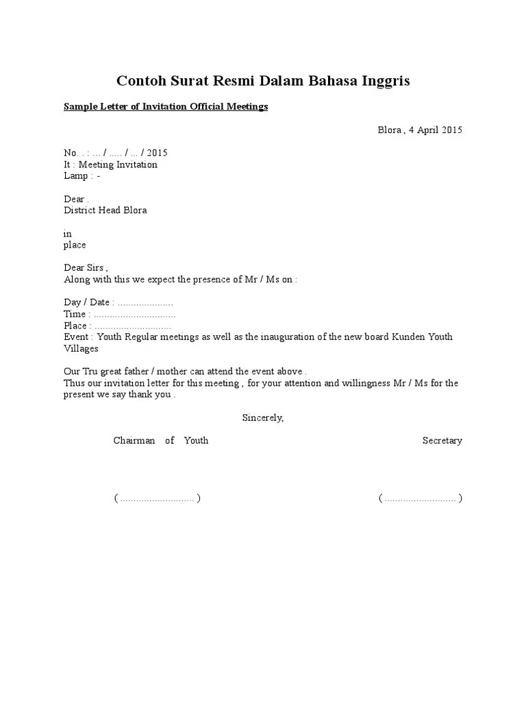 Surat Resmi Dalam Bahasa Inggris : Contoh Surat Resmi Bahasa Inggris Sederet Com : surat lamaran kerja biasanya dikirimkan untuk melamar sebuah posisi kerja di suatu perusahaan.. 10 contoh undangan bahasa inggris berbagai acara. Jika seorang karyawan tidak masuk kerja maka juga dibuatkan surat resmi berupa surat izin bahasa inggris. Atas segala perhatian dan kesempatan yang bapak berikan, saya ucapkan terima kasih. Terima kasih ibu dimah turiyem yang sudah mau berbagi membuatkan contoh surat undangan resmi dalam bahasa. surat formal adalah surat yang dibuat dan dikirimkan kepada suatu instansi resmi atau formal pada suatu lembaga kantor sekolah.